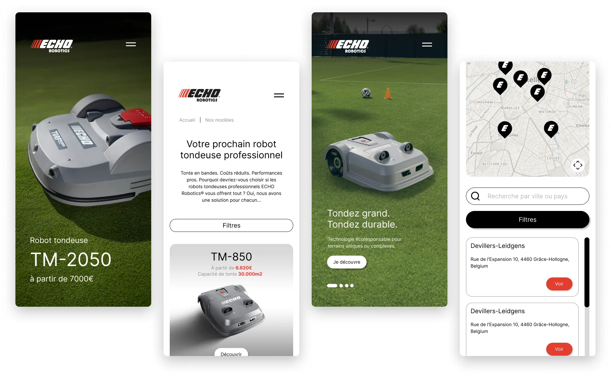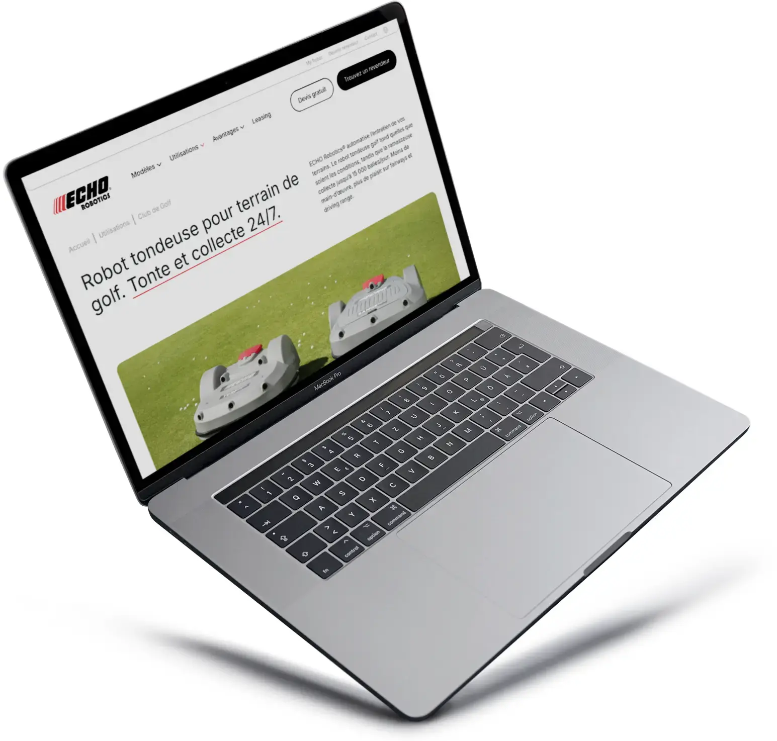 ECHO Robotics, born of the evolution around Yamabiko Europe's acquisition of Belrobotics, operates in the demanding sector of robotics for mowing and automatic maintenance of green spaces. The brand needed a website that reflected its positioning, a blend of historical expertise, technological innovation and international ambition. The technical challenge: transpose a strong artistic direction into a functional, scalable, high-performance site that's easy to maintain on a daily basis.